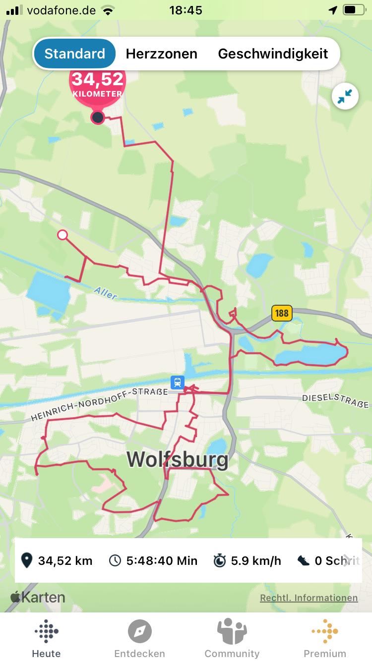 Mit 12 Personen ging es am Sonntag Mittag los. Die Strecke führte vom Schloß über den Allersee in die Innenstadt. Dort haben wir uns bei einem Picknick gestärkt. Dann ging es weiter Richtung Stadtwald und zum Klieverseberg, wo man eine herrliche Aussicht auf Wolfsburg hat. Der Endpunkt war das Mahnmal an der Breslauer Straße.